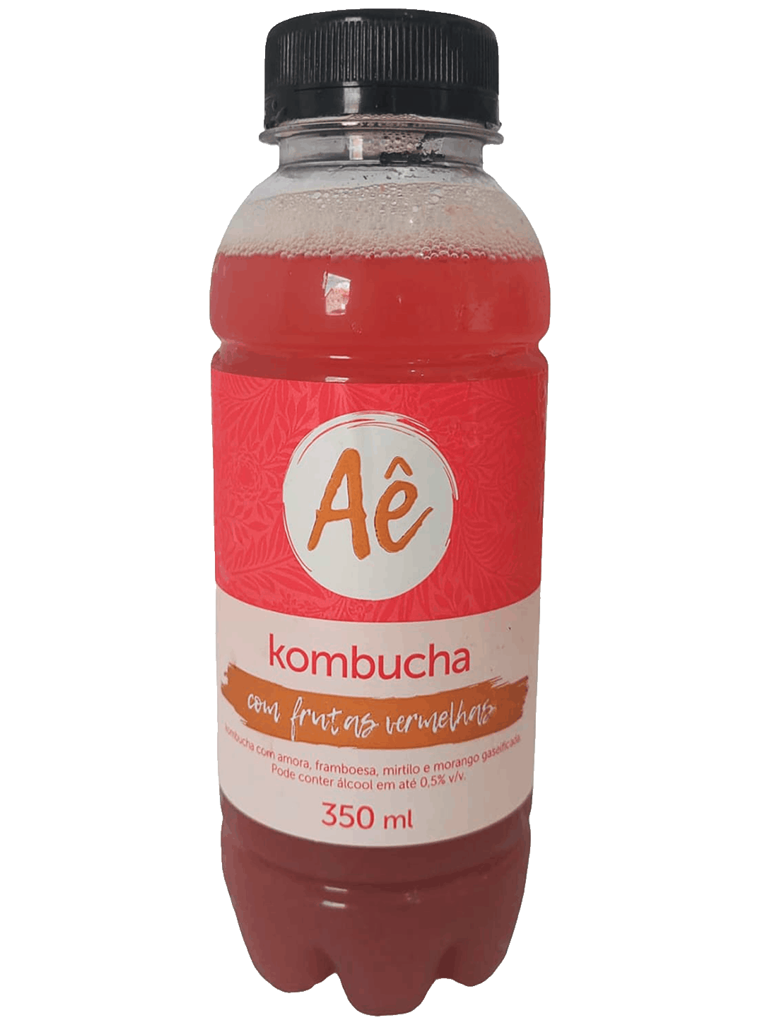 Ingredientes: Água, açúcar, amora, framboesa, mirtilo, morango, chá verde (Camellia sinensis), e SCOBY de kombucha- Cultura simbiótica de bactérias e leveduras).